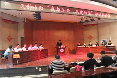 武漢天創市政建設工程有限公司組織舉辦“我與企業 共建和諧”趣味辯論賽,集團公司陳穎書記、邢榮斌主任等領導到場觀看了比賽。