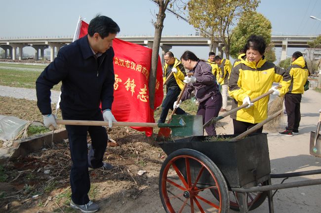 3 月 25日,區委常委、區委辦公室主任李艷明等一行率領漢陽市政志愿服務隊為三官村平整主街道路,方便村民出行。