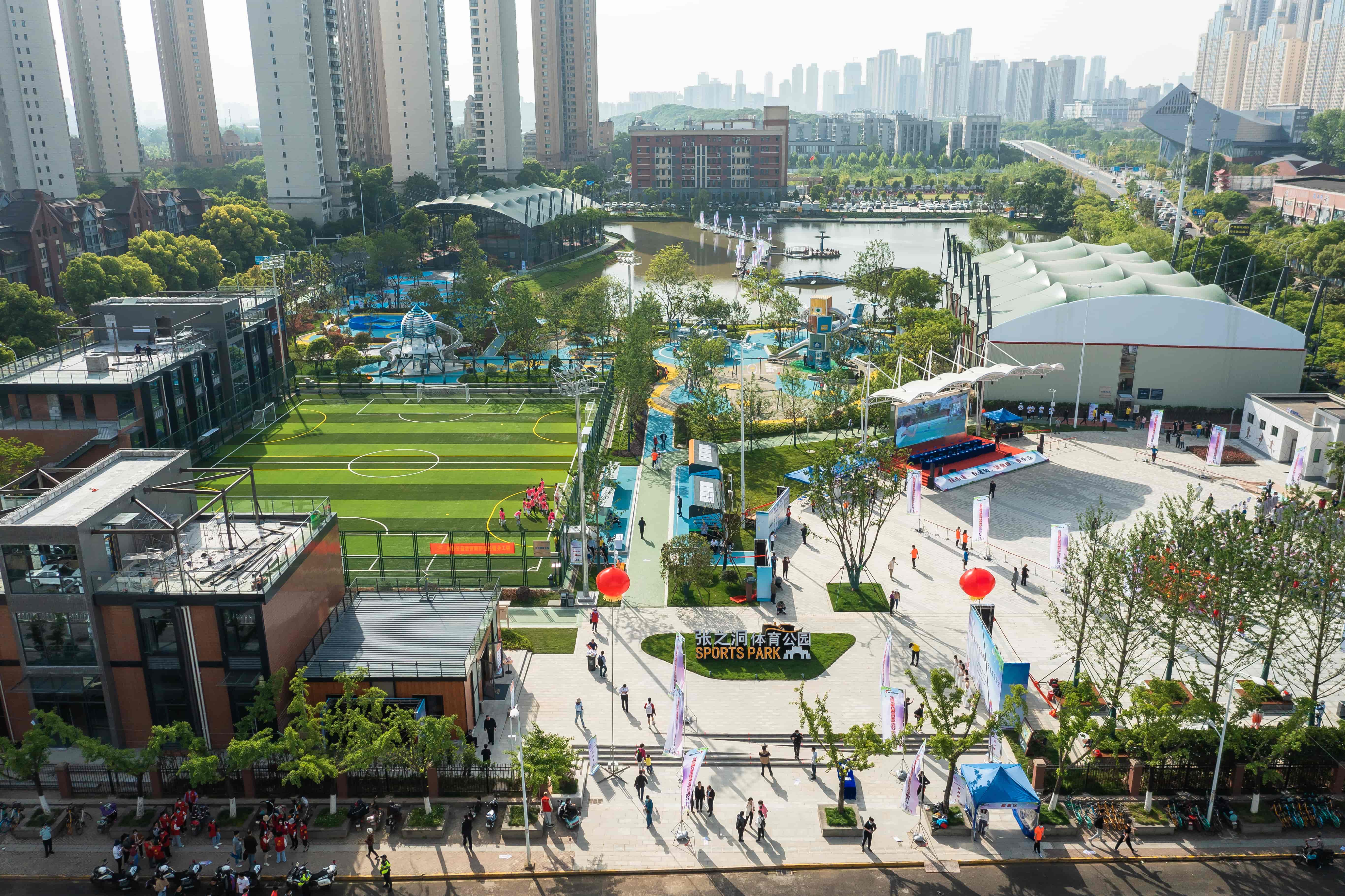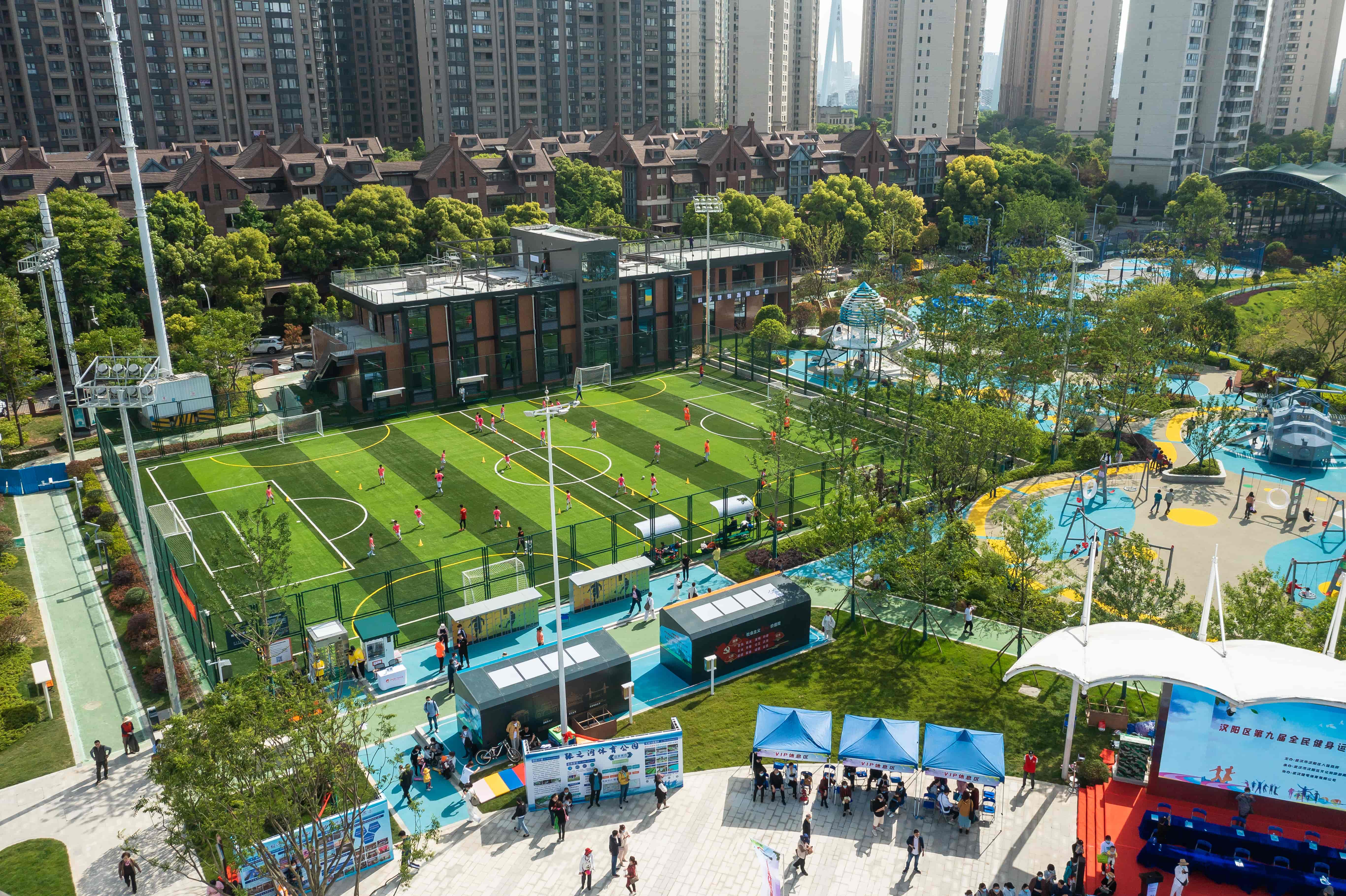 區(qū)別以往先進行綠化項目建設(shè)再配套相關(guān)器材的公園建設(shè)模式,張之洞體育公園則是先進行體育器材建設(shè)再根據(jù)體育項目輔之以相應(yīng)的綠化設(shè)施。獨具匠心的設(shè)計,加上大數(shù)據(jù)、互聯(lián)網(wǎng)、云計算等一系列現(xiàn)代信息技術(shù)的運用,使得從前荒廢的公園變成今天這座武漢城區(qū)體育設(shè)施類型最多、體驗功能最全、自然生態(tài)智能化的體育公園。