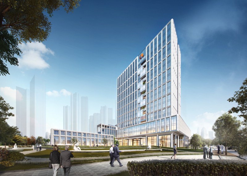 設(shè)計時,結(jié)合場地的風環(huán)境、光環(huán)境、熱環(huán)境、聲環(huán)境等氣候條件和地理環(huán)境,進行場地設(shè)計與建筑布局,從綠色建筑角度出發(fā),最大程度地優(yōu)化建筑,營造良好的工作環(huán)境及氛圍。