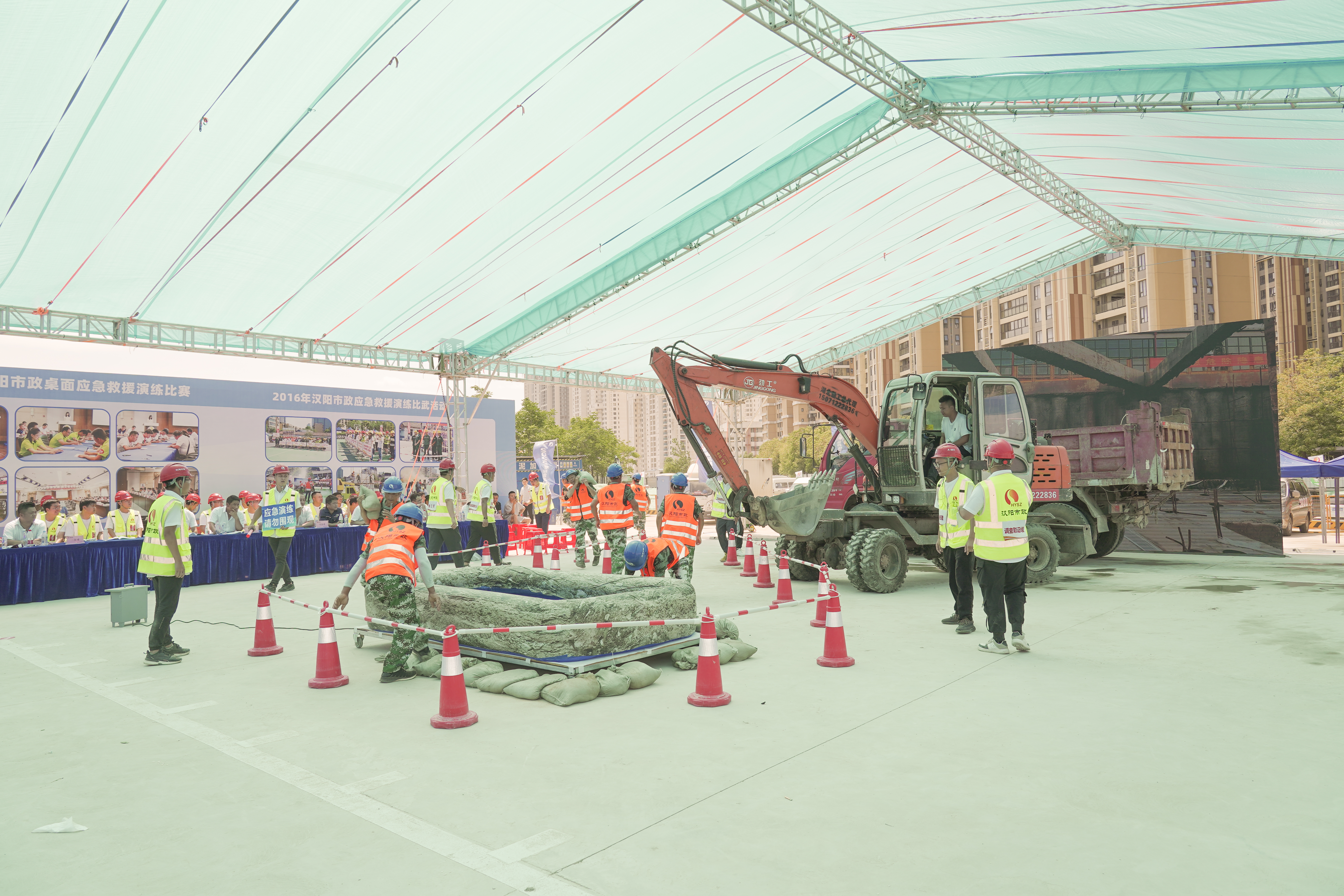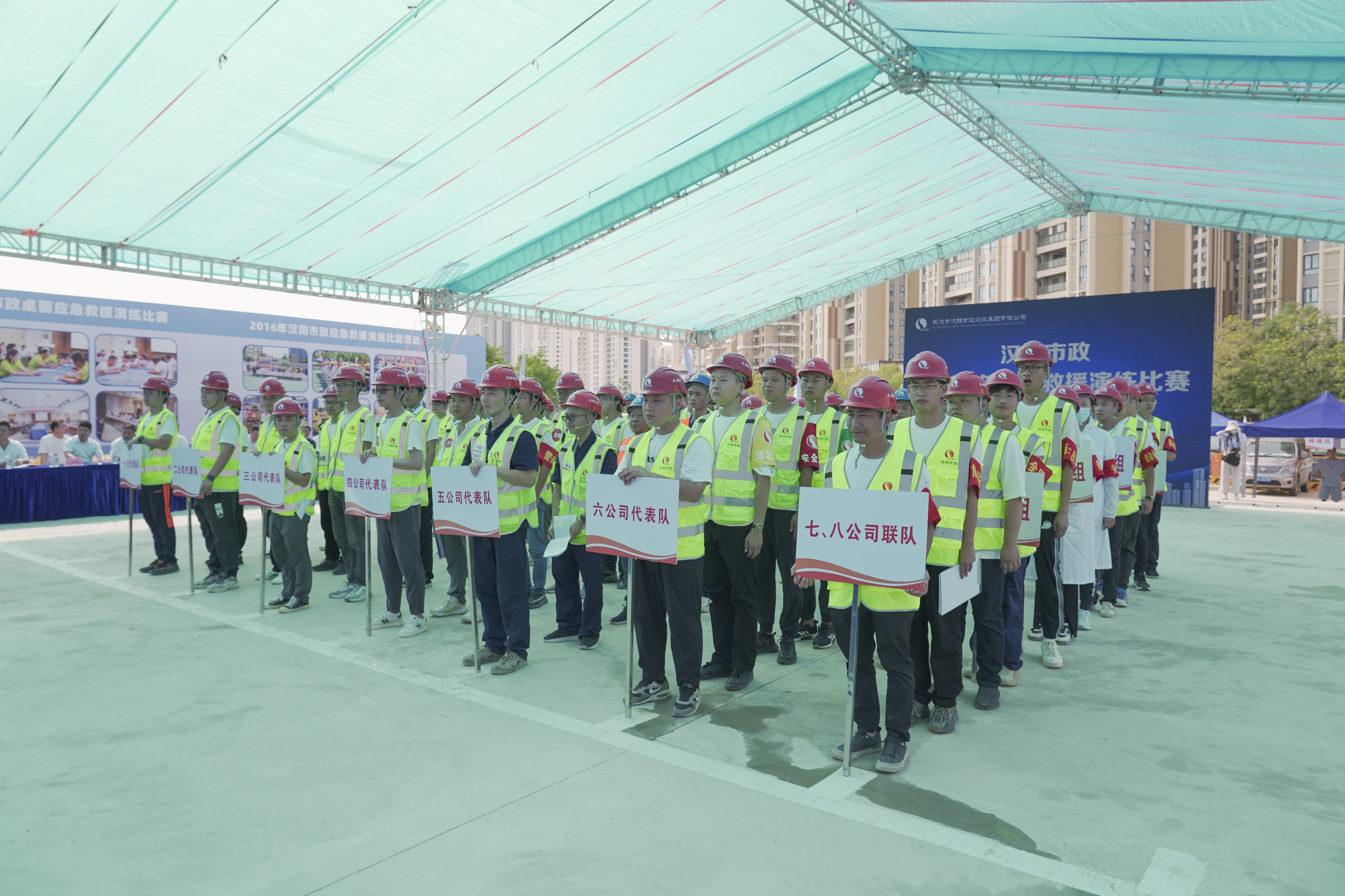 6月27日上午,漢陽市政在漢江南岸綜合治理項目部開展2022年安全應急救援技能比武大賽。本次比賽由武漢市漢陽區國有資產監督管理局主辦,漢陽市政承辦、天創建設協辦。湖北省建設工程質量安全監督站站長楊碧華、湖北省住房和城鄉建設廳質安處副處長帥元新、武漢市城鄉建設局質安處廉新斌、武漢市建設工程安全監督站閻鵬,漢陽區應急管理局局長李漢光、區建設局局長胡紅勝、區國資局副局長高明、區建筑管理站站長王晟,漢陽市政總經理王智高、總工程師荊武等出席活動。