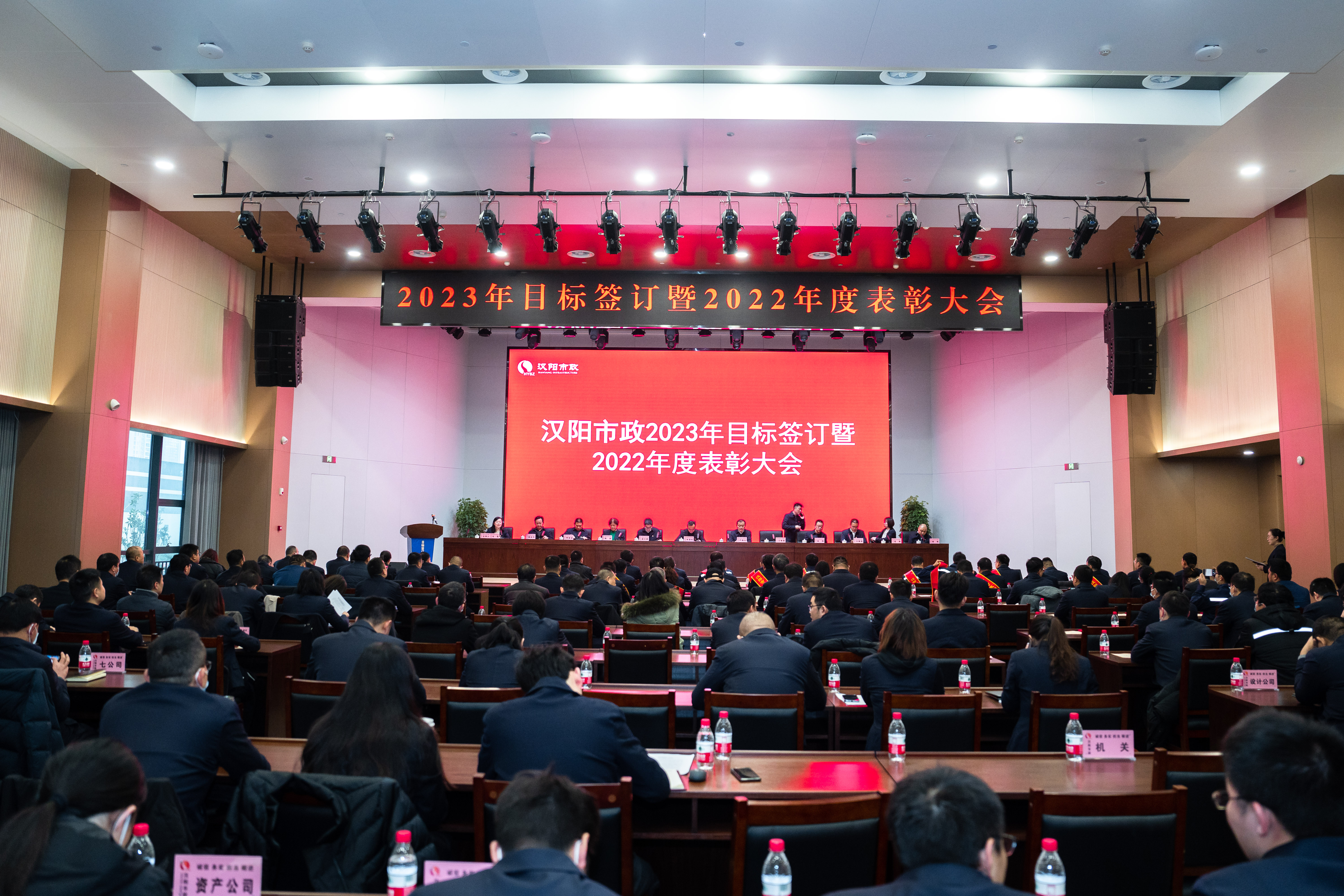 2月10日上午,漢陽市政召開2023年黨建工作部署會、目標簽訂會、2022年度表彰大會。漢陽區建設局黨組書記、局長朱源松蒞臨指導,漢陽市政黨委書記、董事長嚴悌文,黨委副書記、副董事長虞志鵬,總經理王智高等黨委班子成員,集團及分子公司副科及以上干部、優秀員工代表參加會議。