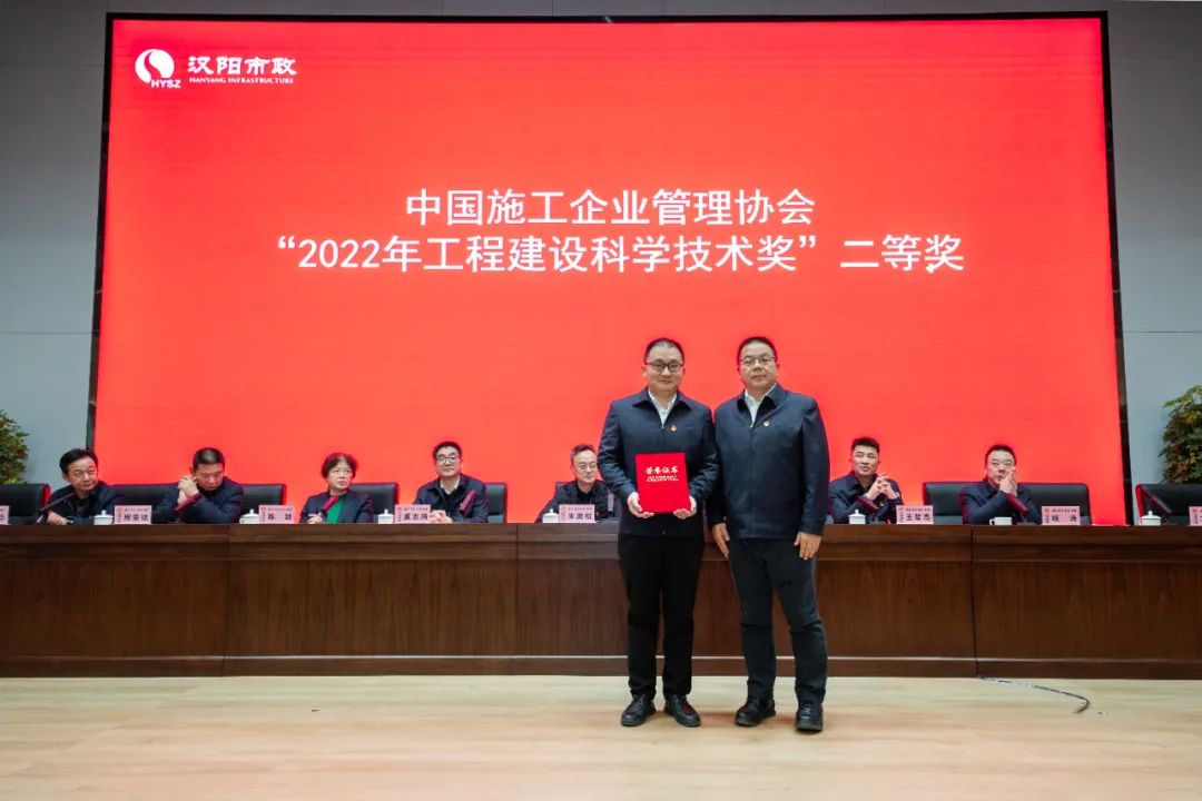 會上表彰了漢陽市政質量獎、第十一屆“優秀項目經理”、工程管理優秀項目部、2022年度“十佳員工”、“優秀員工”、先進基層單位,并對獲得國家級質量、安全文明、科技創新成果獎項進行了表彰。