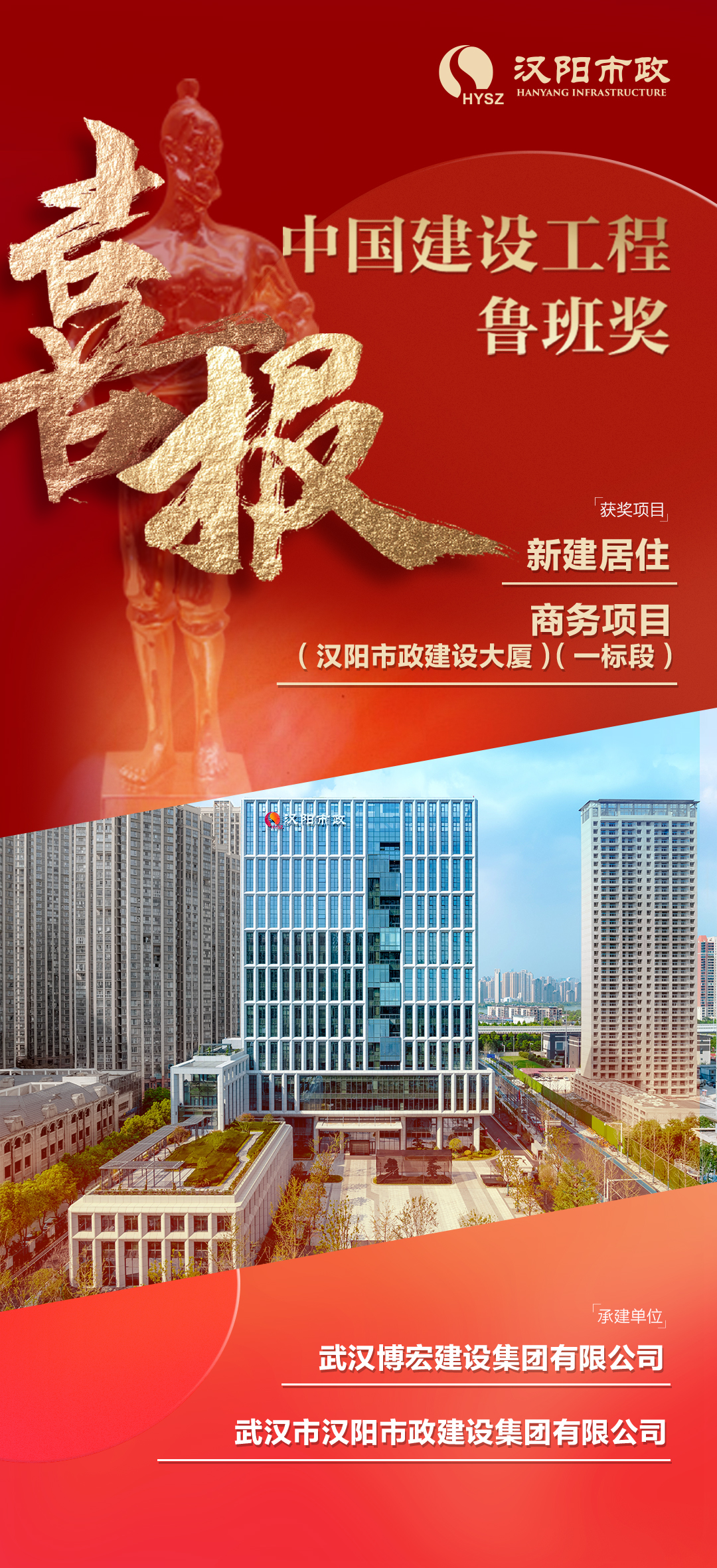 再添“小金人”!漢陽市政建設(shè)大廈榮獲魯班獎(jiǎng)!