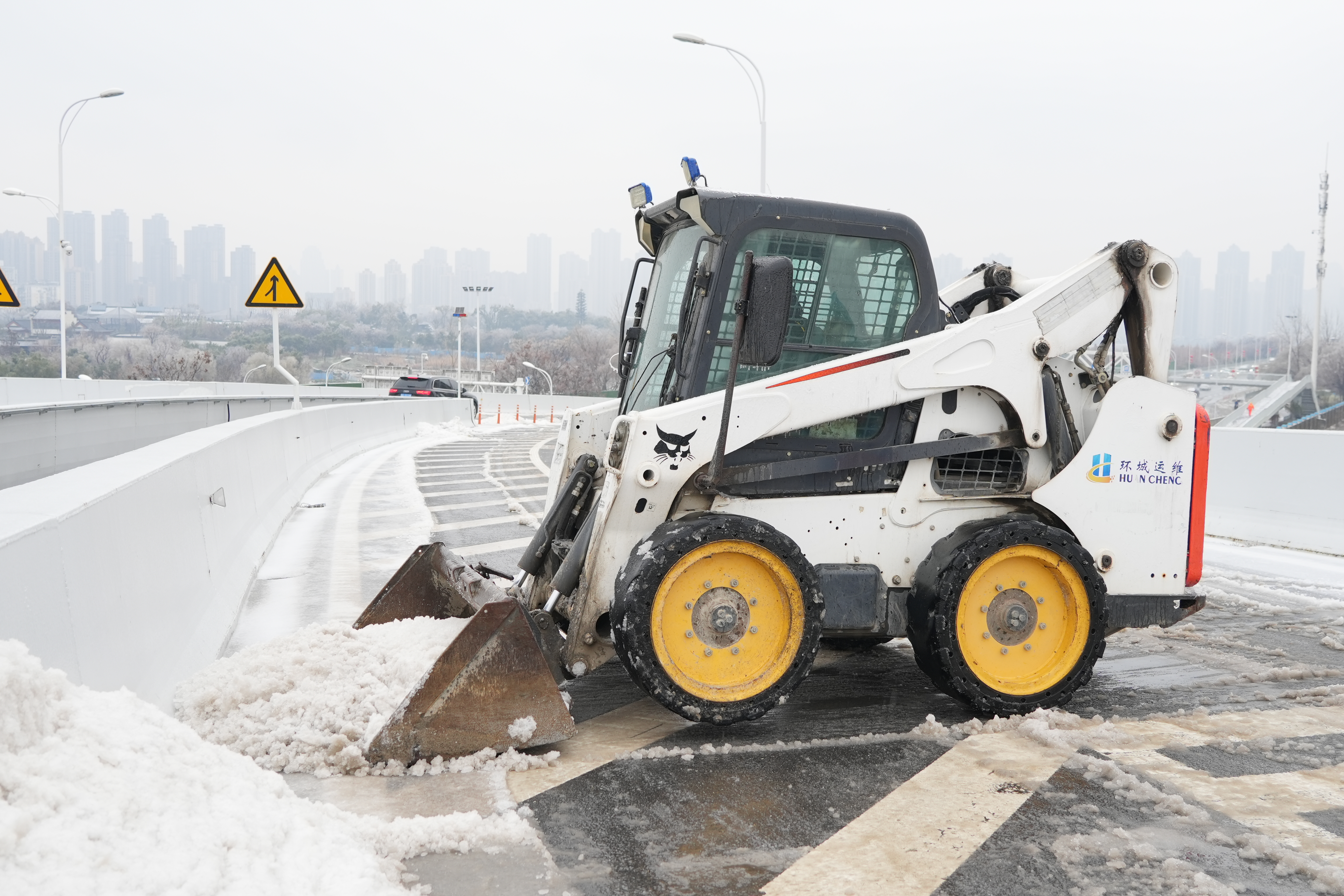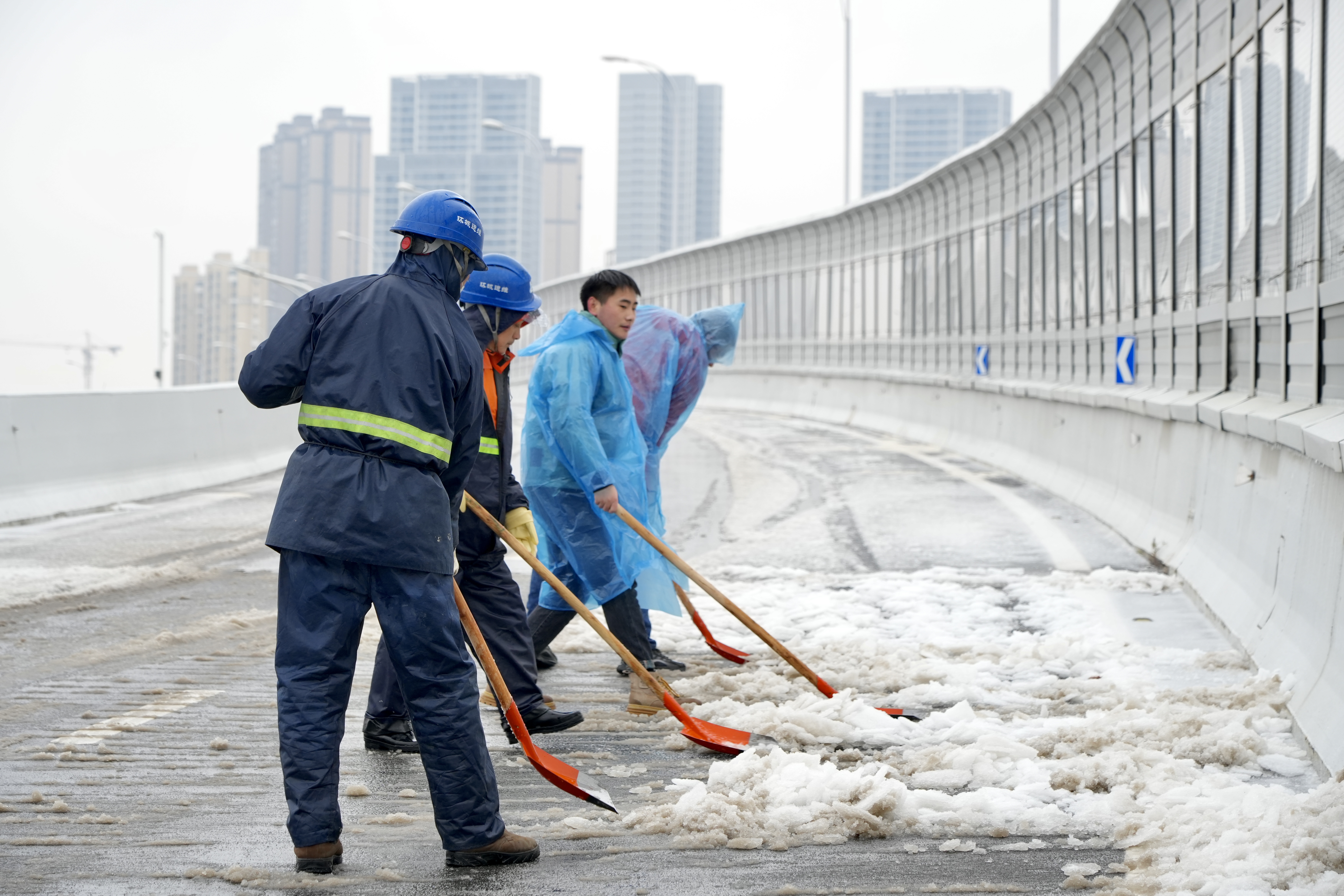 2月2日01時49分武漢市氣象臺發布道路結冰黃色預警信號,漢陽市政啟動應急預案,志愿者服務隊、鏟雪除冰突擊隊連夜組織力量、緊急出動,對快速通道、高架橋梁以及漢陽區墨水湖北路、漢陽大道、鸚鵡大道等主干道開展掃雪除冰作業,抗風雪、護安寧、保出行。