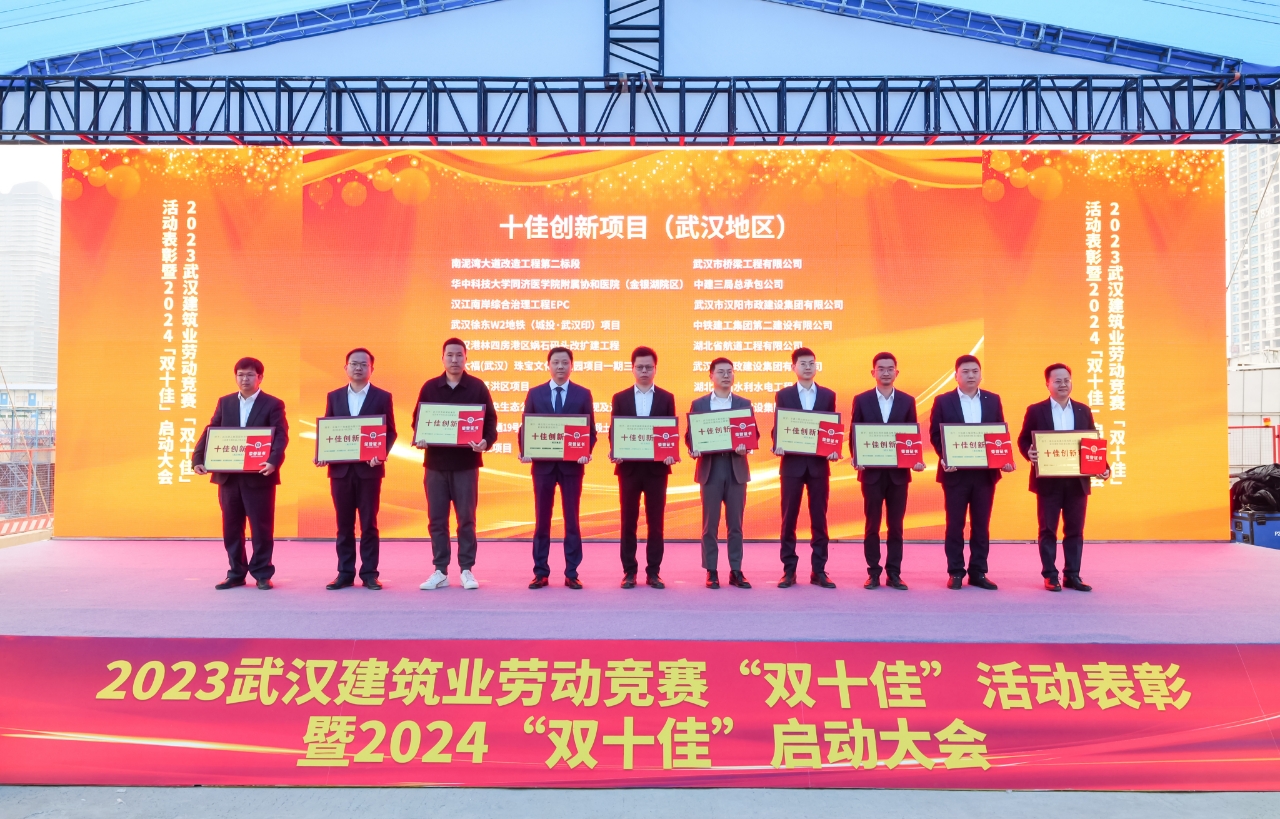 3月15日下午,被譽為武漢建筑行業“奧斯卡獎”的2023年武漢建筑及勘察設計行業勞動競賽“雙十佳”活動頒獎典禮在漢舉行,漢陽市政漢江南岸綜合治理工程EPC項目被評為“湖北省工人先鋒號”,同時獲評“十佳創新項目(武漢地區)”。宜昌天創覽江府項目獲評“十佳創新項目(外埠地區)”。項目經理管鵬獲評“優秀建設者(武漢地區)”。