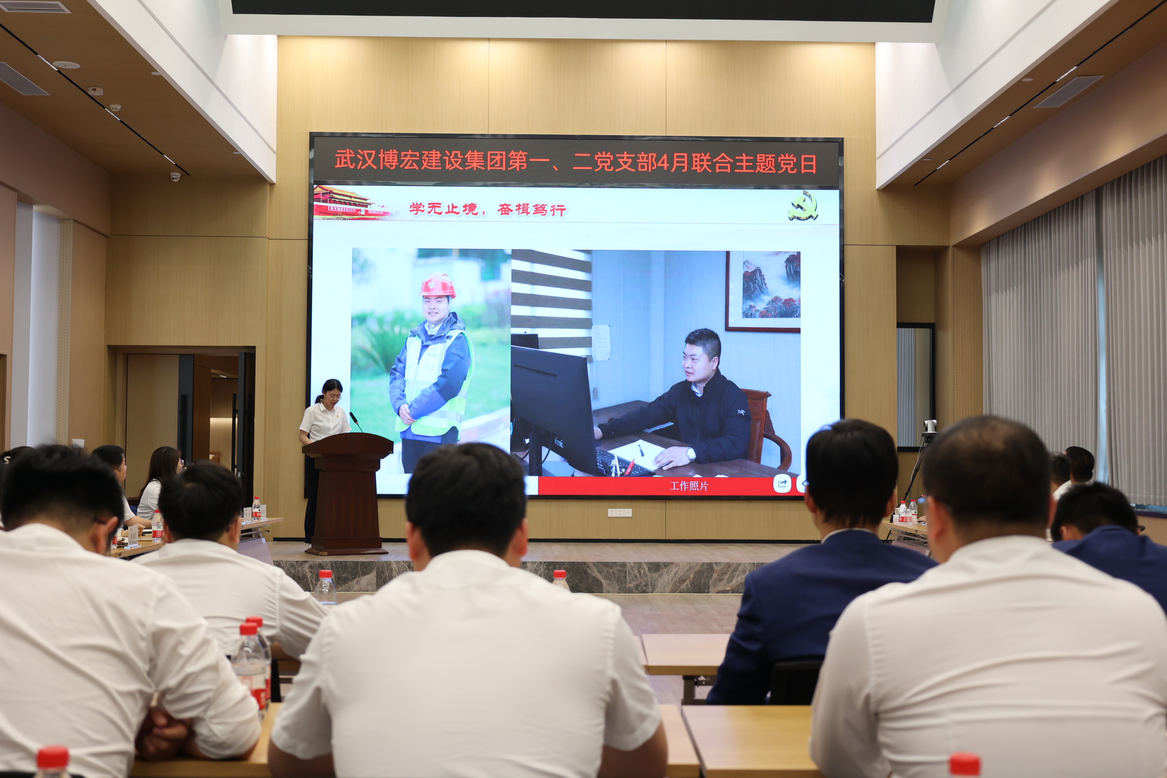 安全文明部部長王鵬以“落實施工企業安全生產主體責任”為題做專業分享。作為特級房建企業,博宏建設集團認真履行國有企業維護國家安全的主體責任,并聚焦中心大局,積極推動“黨建+安全”深度融合發展,進一步筑牢全年安全生產根基,用“紅色引擎”點亮“安全綠燈”。