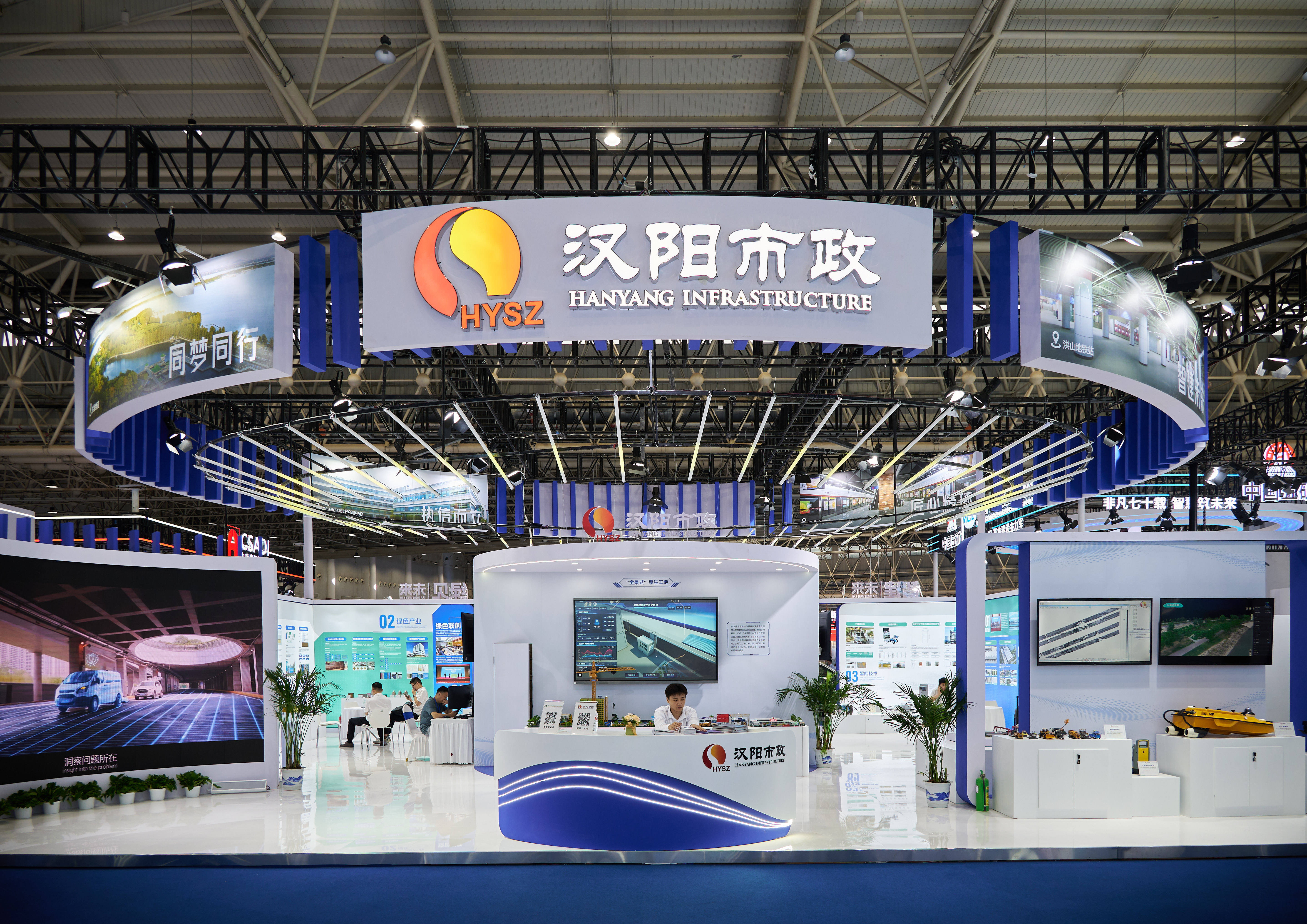 雙智博覽會自2019年首屆創辦以來,至今已成功舉辦四屆,逐漸成為行業內最具影響力和權威性的展會之一。漢陽市政積極響應,在本次展會中以數字建造、智能建造、綠色建造為主題展現新理念、新技術、新產品、新應用。展區大面積采用科技藍、白色來點綴,營造不一樣的活力氛圍,重點展示公司取得的重點業績和榮譽獎項、聯合體工作、綠色智能產業及技術,以及CIM基礎平臺建設、企業數字化轉型等內容。