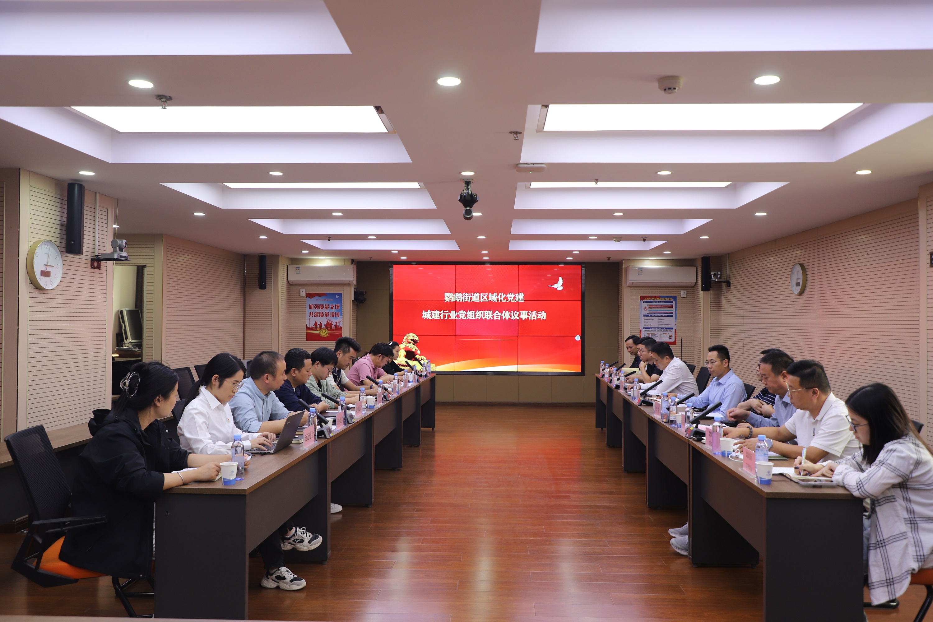 為強化街企聯動,實現資源共享、優勢互補,集中智慧和力量解決發展難題,10月15日下午,鸚鵡街道區域化黨建城建行業黨組織聯合體議事活動在致遠建設九樓大會議室順利召開。區委組織部副部長王仕林、鸚鵡街道黨工委副書記宋彬、街辦事處副主任王祖艾、街人武部部長李颙及城建行業聯合體成員共同參加議事活動。活動由鸚鵡街道黨工委兼職委員、致遠建設黨委書記蘇琦主持。